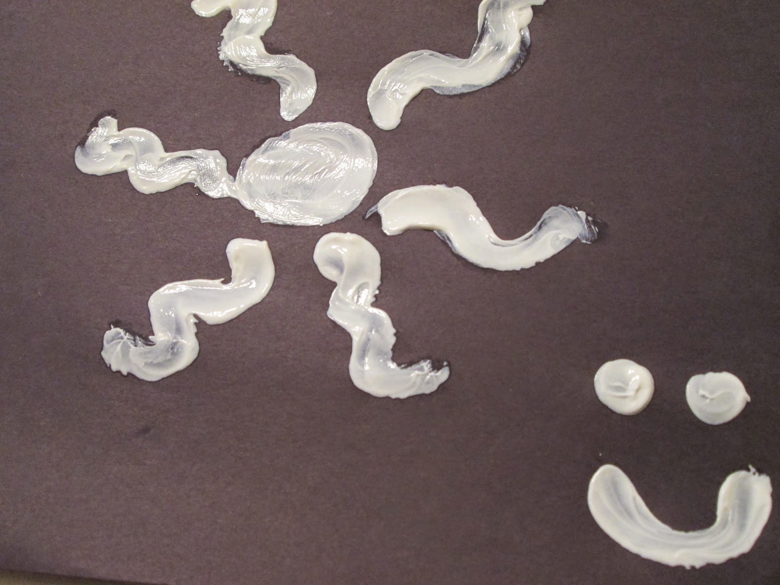 Cut out circles of construction paper and press one down onto the shaving cream mixture. Hold it there for about 10 seconds, making sure it touches everywhere. Then gently pull it off and set it aside to dry.